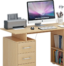 Дизайн письменного или стола для компьютера может быть минималистичным, или объединять сам стол, тумбу и дополнительные полки, ящики. Дополнит его вместительный стеллаж для книг или папок с документами.