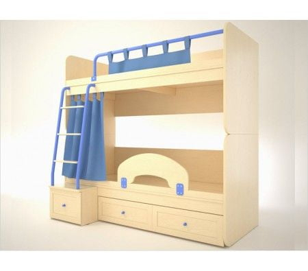 ·          Комплекс   состоит из двухъярусной кровати и двух вместительных выкатных ящиков. ·          Комплект «НЕМО» можно поставить как две отдельные кровати. ·          Верхний ярус оборудован удобным и безопасным металлическим бортиком. ·          Укромное местечко обеспечивает комплект занавесок. ·          Комплект можно дополнять изделиями из модульной системы «ОЛИМП». ·          Надежная, безопасная лестница с удобными ступеньками позволит ребенку легко забраться в кровать. ·          Расположение лестницы (справа или слева) можно выбрать при сборке. ·          Скругления и радиусные скосы обеспечат безопасность Вашему ребенку.