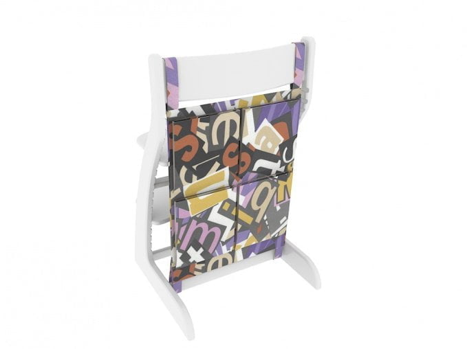 Карман имеет крепления и надежно фиксируется позади стула к спинке и нижней планке.