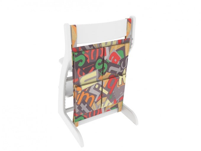 Карман имеет крепления и надежно фиксируется позади стула к спинке и нижней планке.