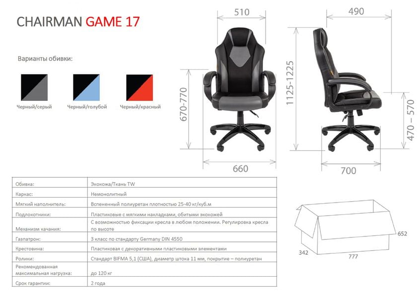 Модель компактного кресла «GAME 17» прекрасно дополнит интерьер геймерской зоны как дома, так и в интернет-кафе. Удобная мягкая спинка, мягкие эргономичные накладки на подлокотники, поддержка головы и шеи, надежные ролики - все это создает комфорт и удобство. Кресло оснащено механизмом качания и фиксации в любом положении. Крестовина прочная и имеет надежные ролики с полиуретановым покрытием в цвет кресотовины. Удобство и высокая надежность обеспечиваются благодаря  наполнению сиденья и спинки материалом повышенной эластичности. Регулировка высоты осуществляется при помощи газлифта.