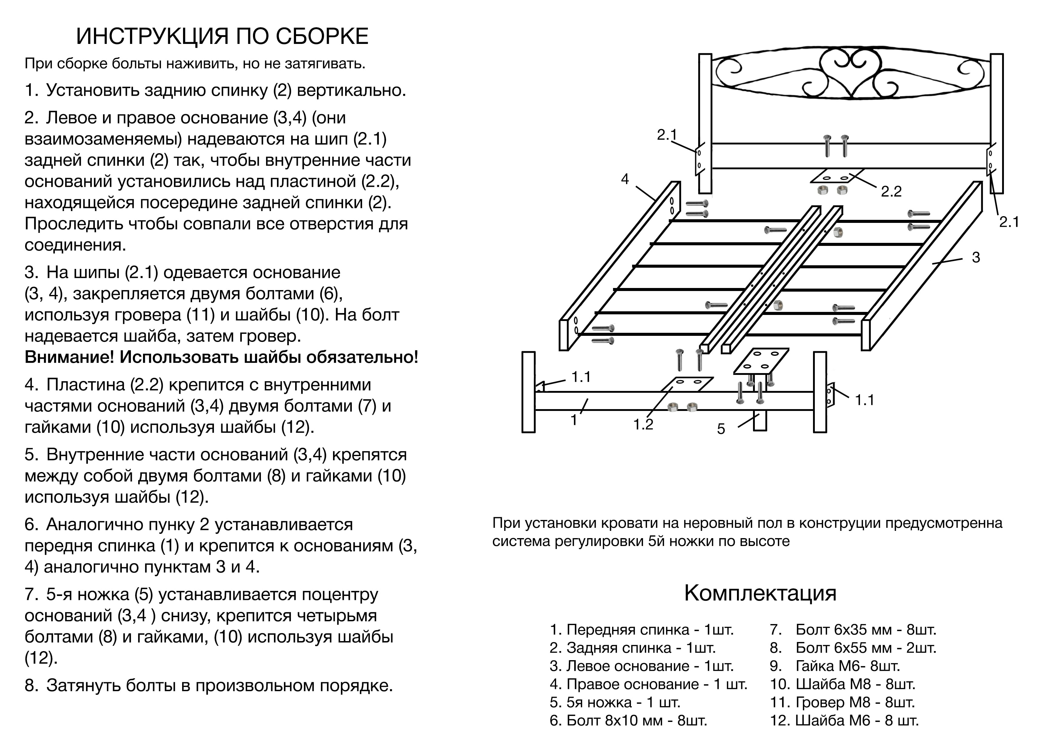 | Особенности | При установке кровати на неровный пол предусмотрена система регулировки пятой ножки по высоте. |