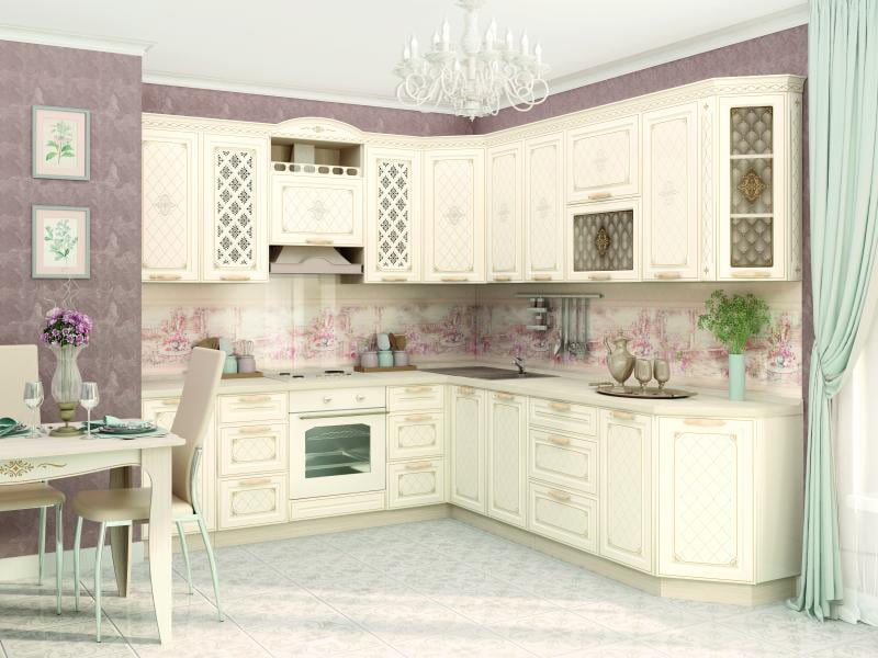 Набор мебели для кухни «Милана» - воплощение стиля и нежной роскоши. Ванильный цвет фасадов и изысканность декора очарует даже самого требовательного покупателя. Гармоничное сочетание светлого корпуса и фасадов зрительно увеличит пространство кухни.
