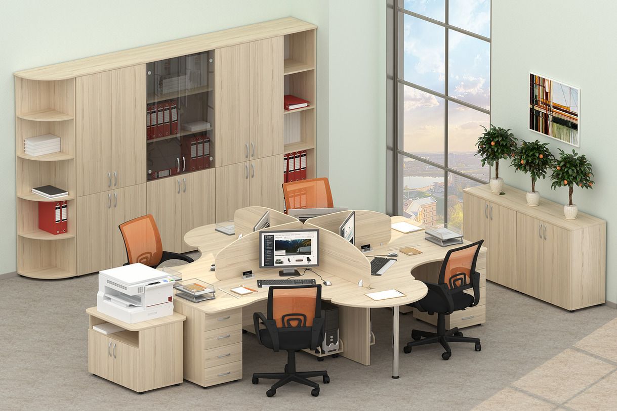 Стол эргономичный под встроенную тумбу Глассй 1.121.16Л Бук светлый / Glassy