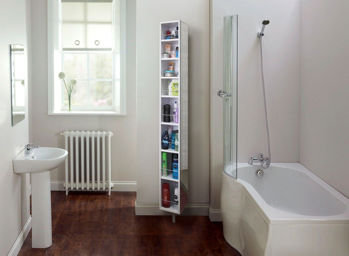 Спика изготовлен из влагостойкого ЛДСП белого цвета и отлично подходит для ванной комнаты. Три зеркала 22,5 на 177 см прекрасно впишутся в интерьер и будут исключительно полезны в ванной. Такая квадратная зеркальная колонна эффектно выглядит и, благодаря зеркалам, визуально расширяет пространство помещения.