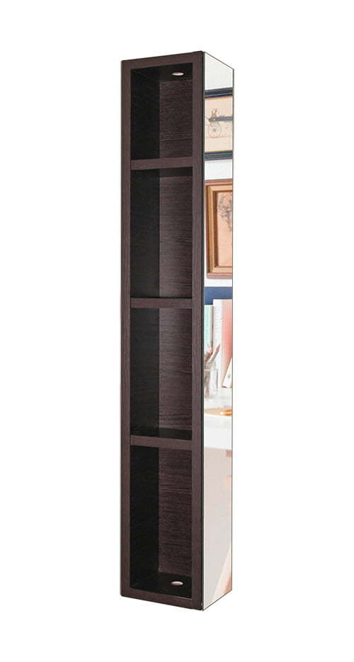 Корпус шкафа изготовлен из влагостойкого ЛДСП цвета венге или молочный дуб, и оформлен со всех сторон белым глянцевым стеклом. Внутри - 4 удобных полки. Поворотный шкаф крепится к стене на двух кронштейнах, которых практически не видно, так что кажется, что зеркальная колонна парит в воздухе. Полностью зеркальный шкаф прекрасно впишется в любой уголок вашего дома, особенно в ванную комнату.