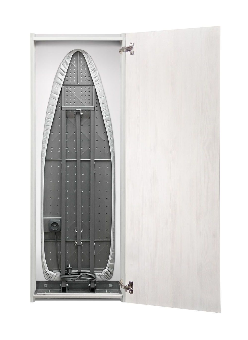 Шкаф со встроенной гладильной доской с глухим фасадом Iron Slim Eco Беленый дуб распашная дверь, открытие вправо