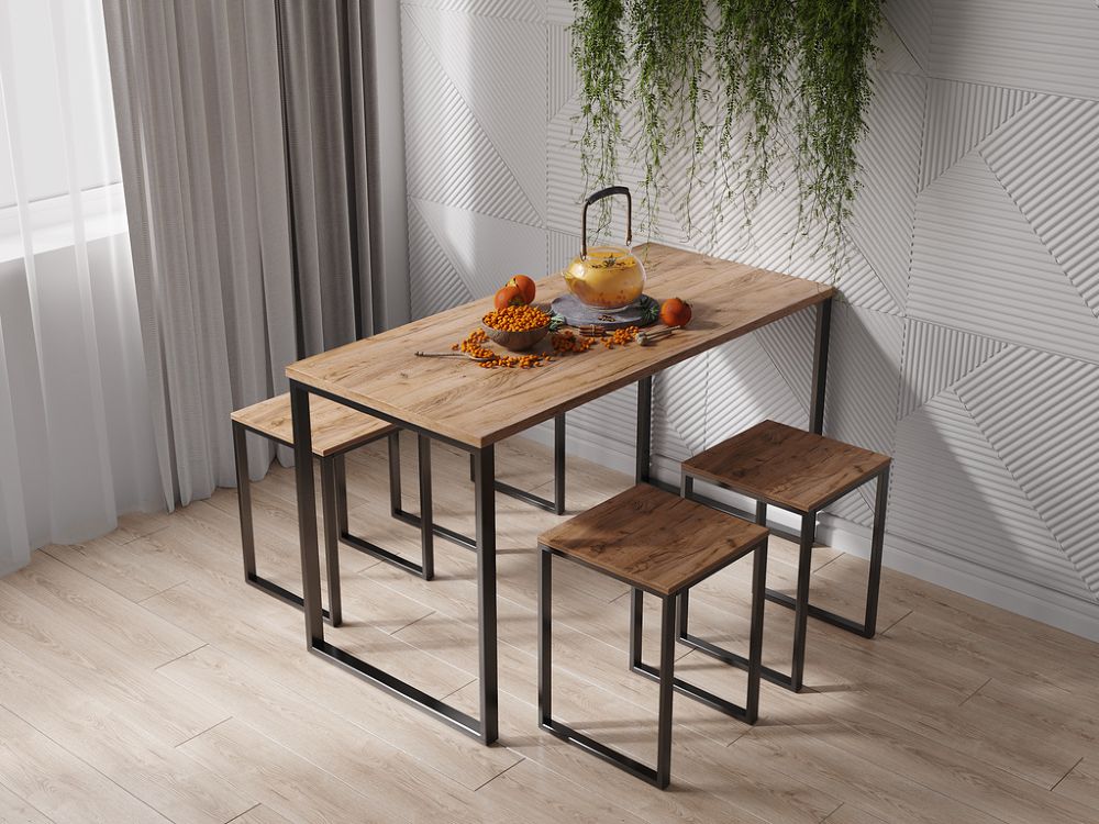Обеденный стол на металлокаркасе.